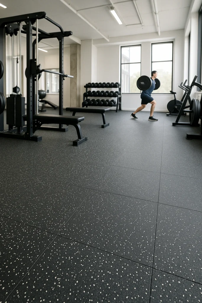 We offer a variety of rubber flooring options, including interlocking tiles and rolled surfaces, to meet your specific needs. Whether you’re designing a home gym or outfitting a professional fitness facility, we provide a durable, slip resistant surface that reduces noise and impact. Our goal is to create flooring that supports strength, safety, and longevity so you can focus on your training without worry.